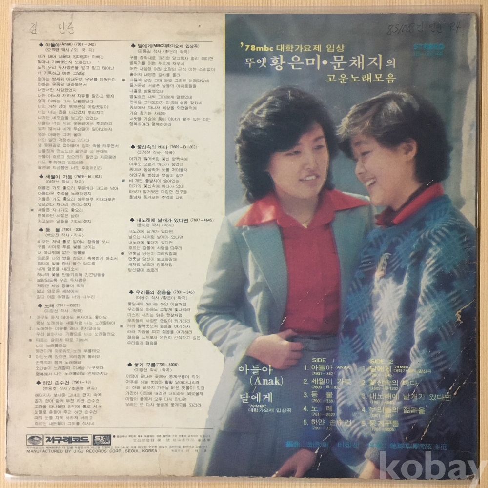 . 가요음반 대부분은 휘어짐이나 손상을 방지하기 위해 무지싱글자킷을 하나 더 사용하여 보관되었던 음반들입니다.
