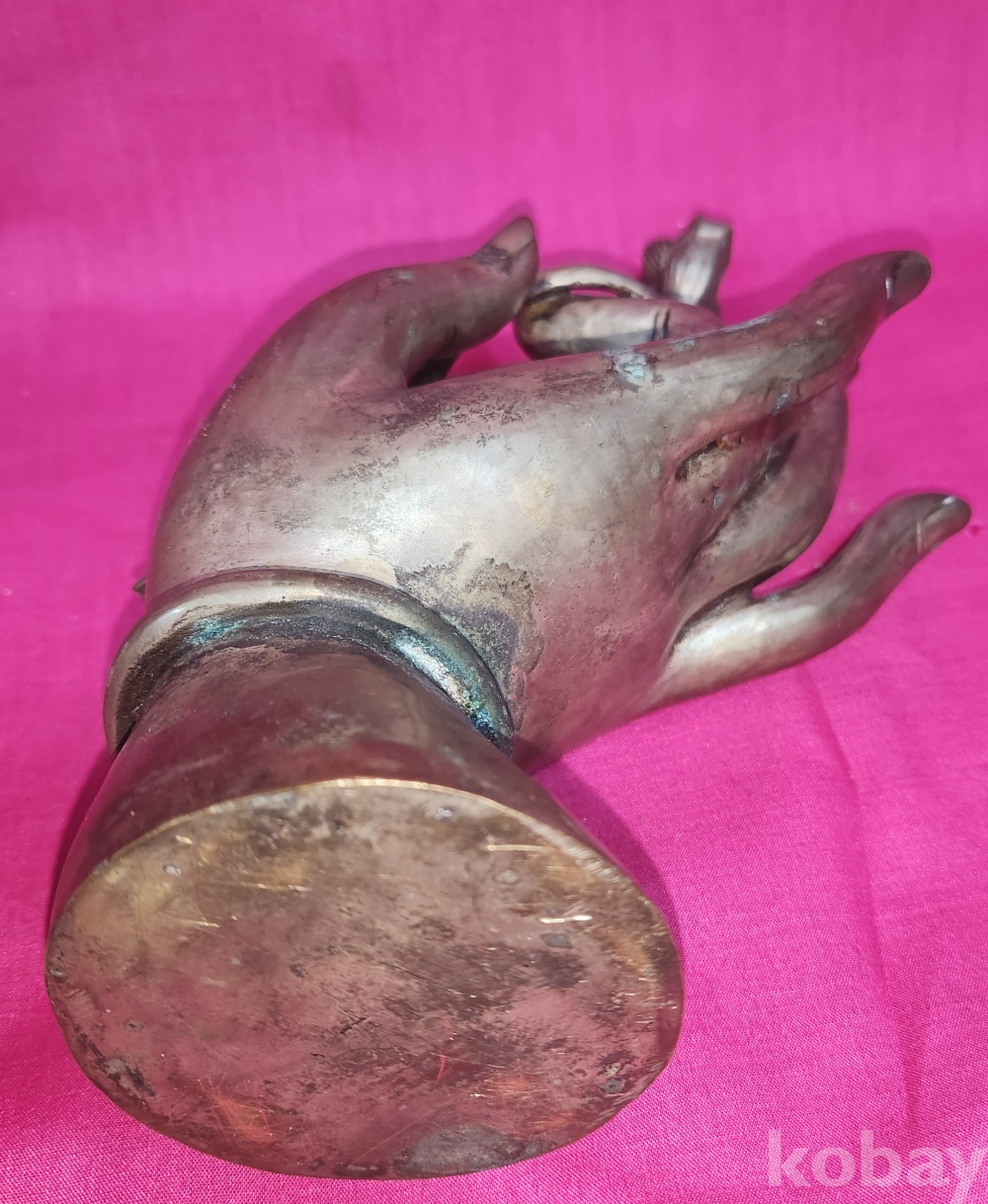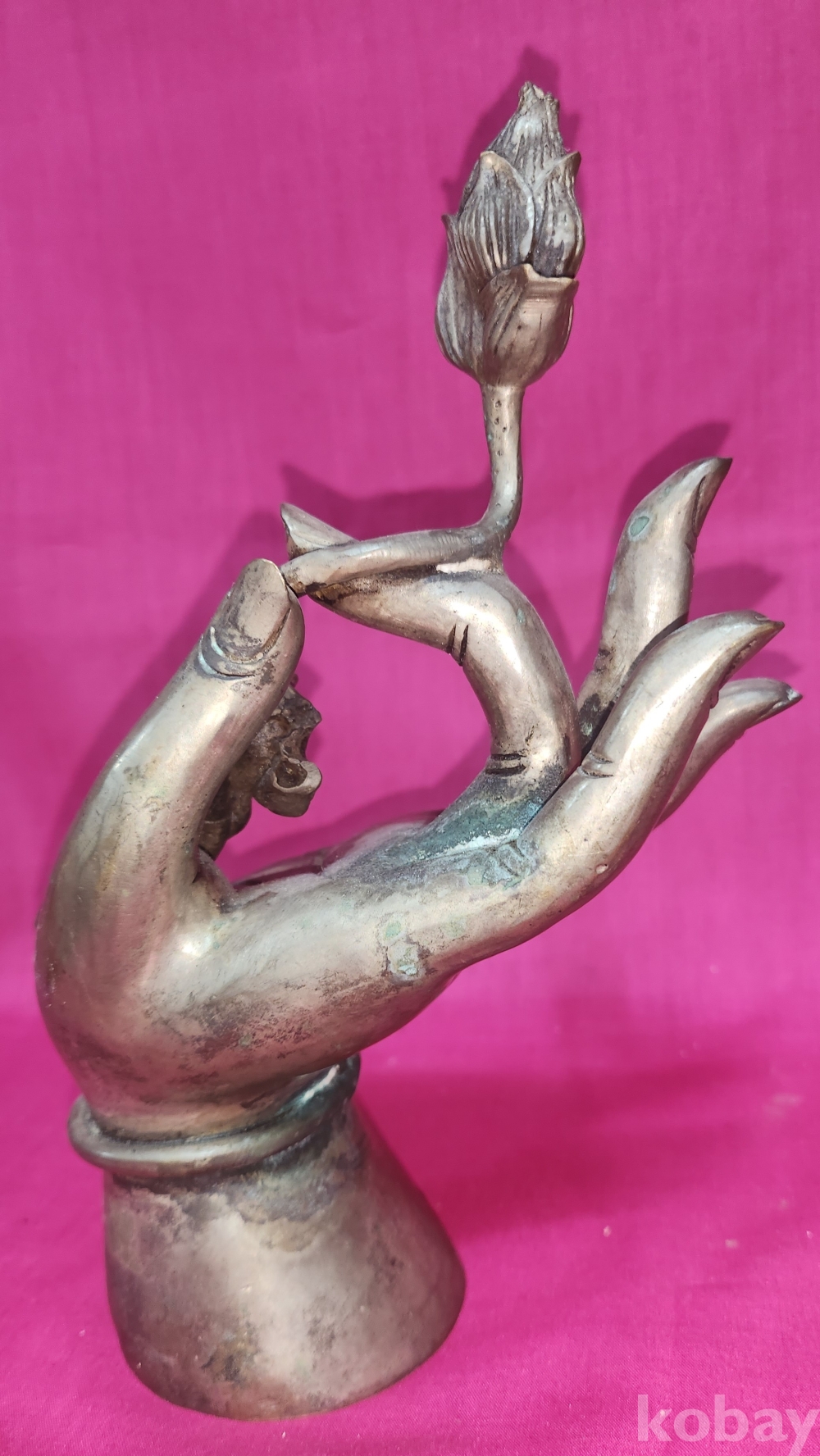 백동으로 완성된 연꽃과 부처님 손(蓮手) 형상 조각품입니다