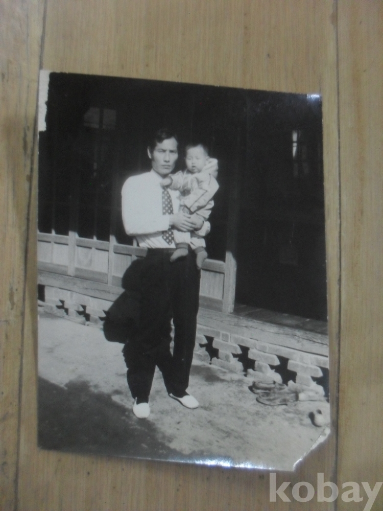 1223h)작은사진-60년대 마당에서 아기를 안은 아빠 사진.