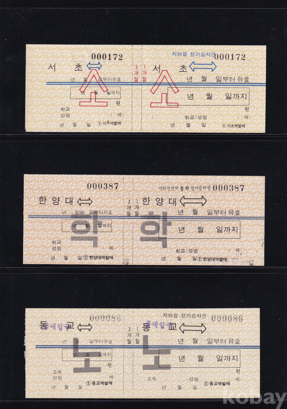 - [기차, 전철, 버스 승차권 모음展] - 지하철 정기 승차권 3종/ 지하철 연락 정기 승차권1종