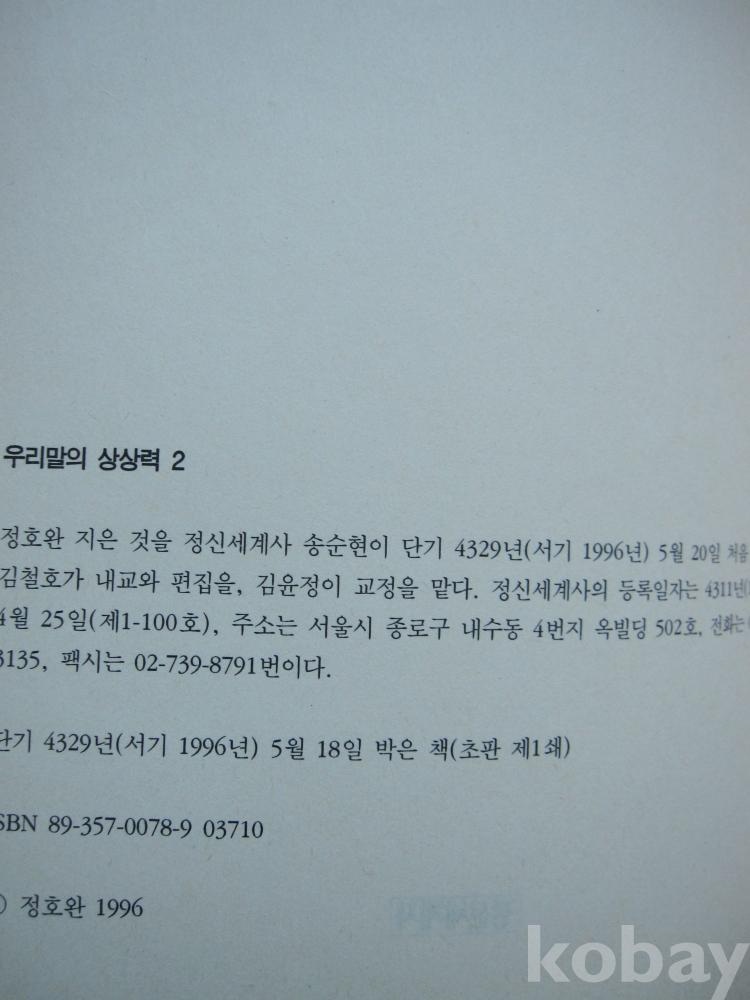대구대 교수 정호완 지음, 정신세계사 발행, 1996년 초판.