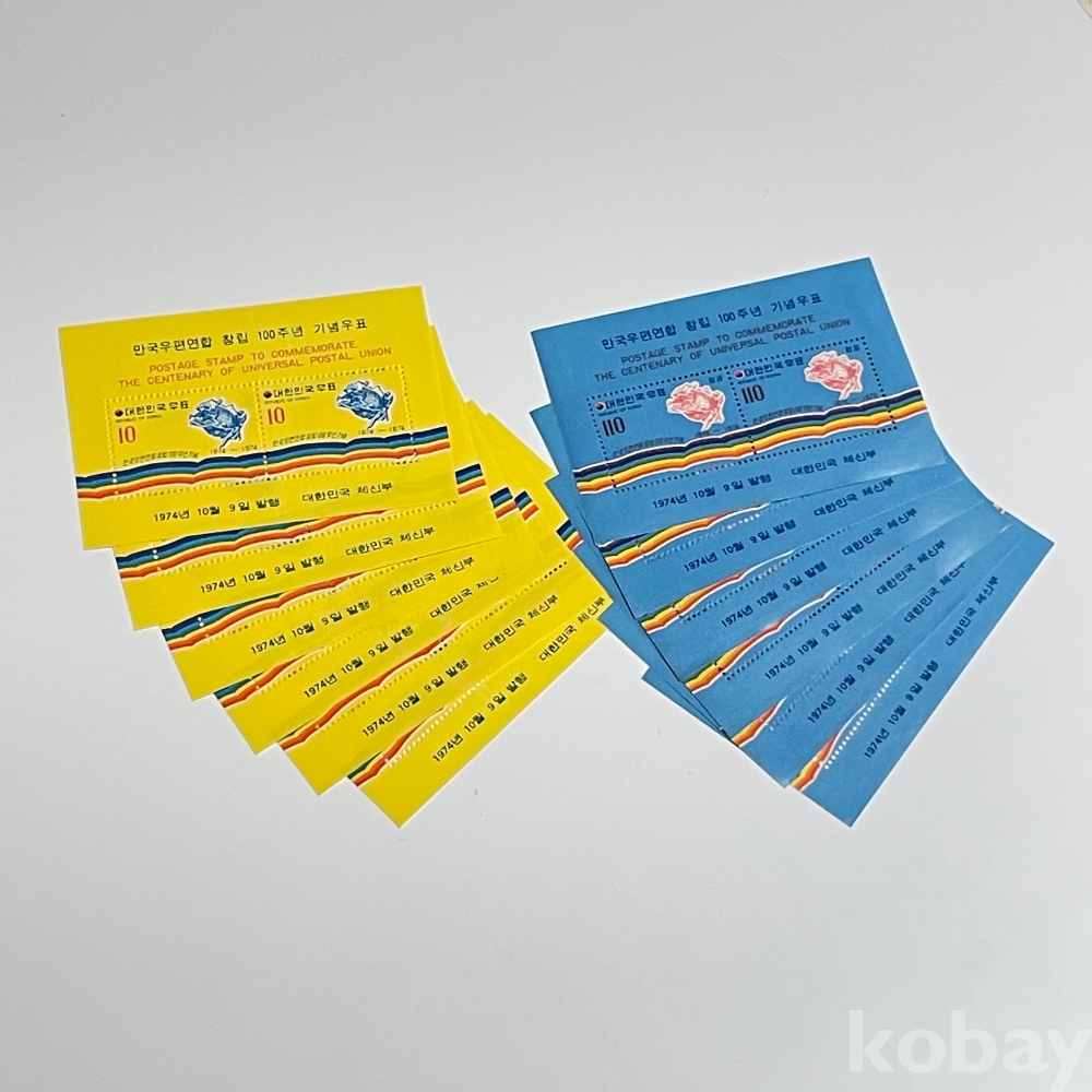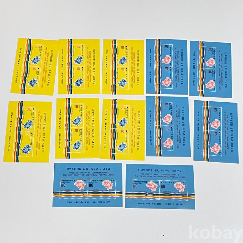 만국우편연합 창립 100주년 기념우표 시트(2종) 12매