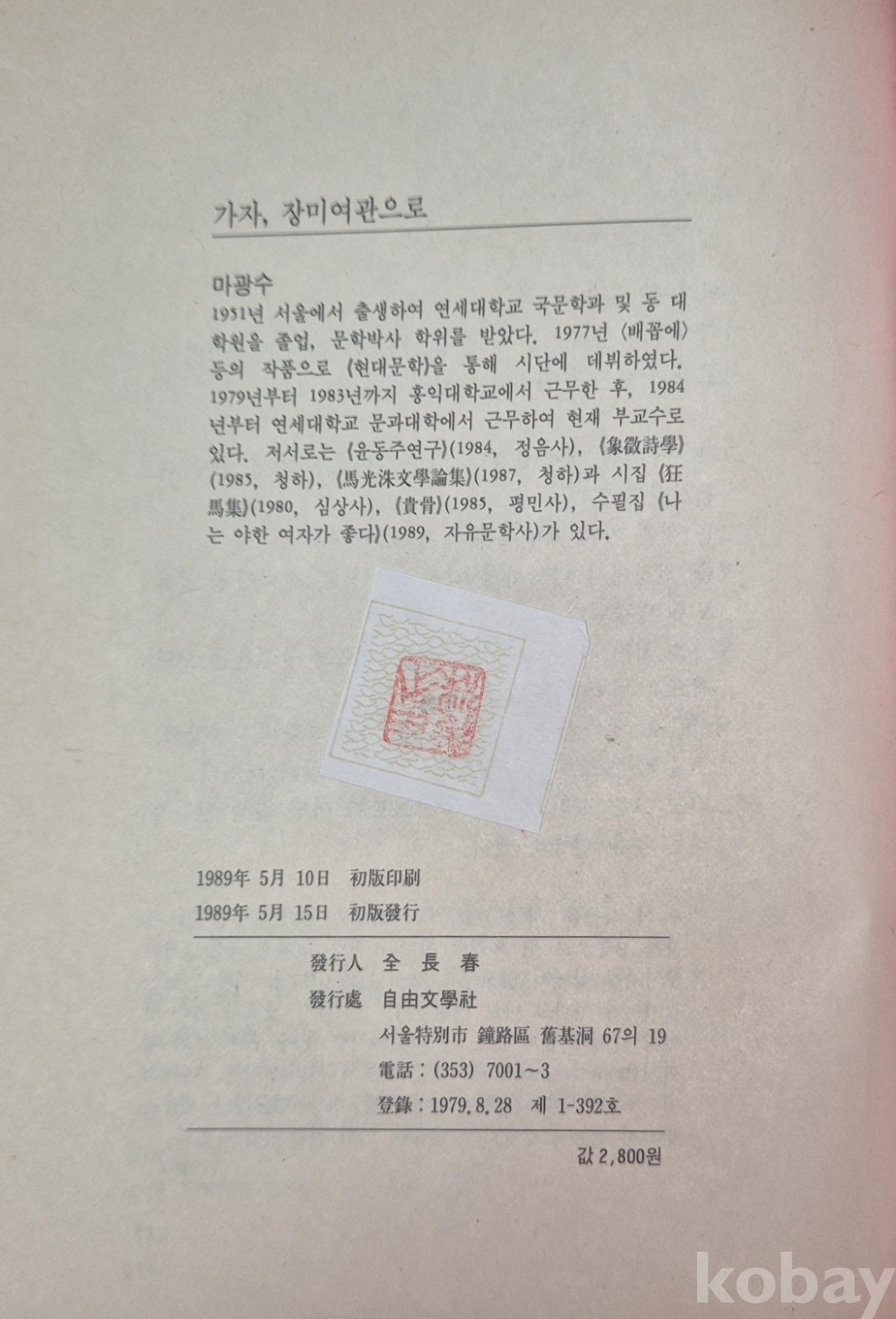 1989년 발행된 마광수 시집 '가자, 장미여관으로' 초판입니다.