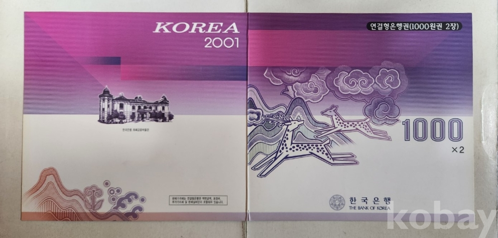 -대한민국 2차 천원 연결권 2001년 발행 미사용 지폐 입니다.