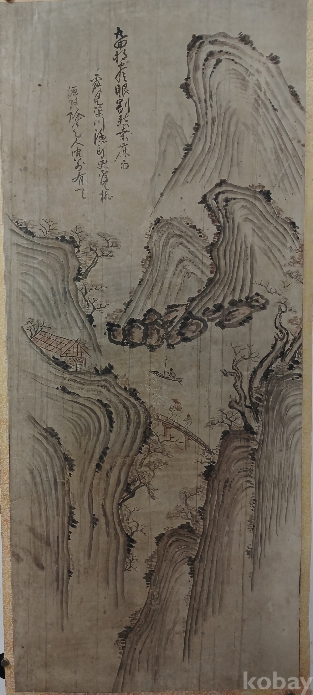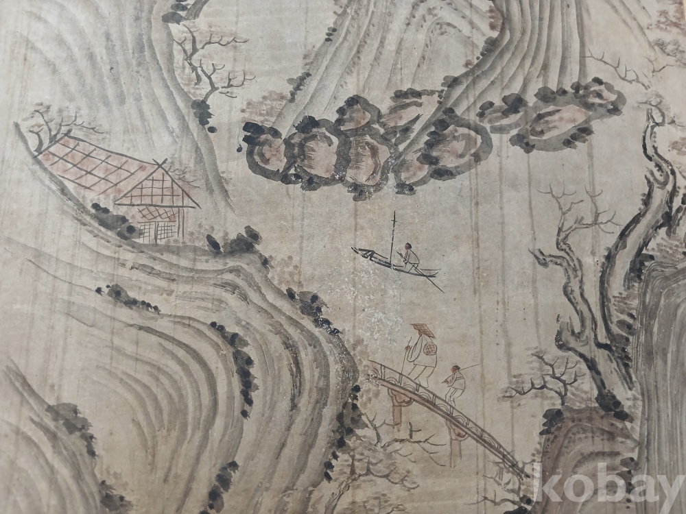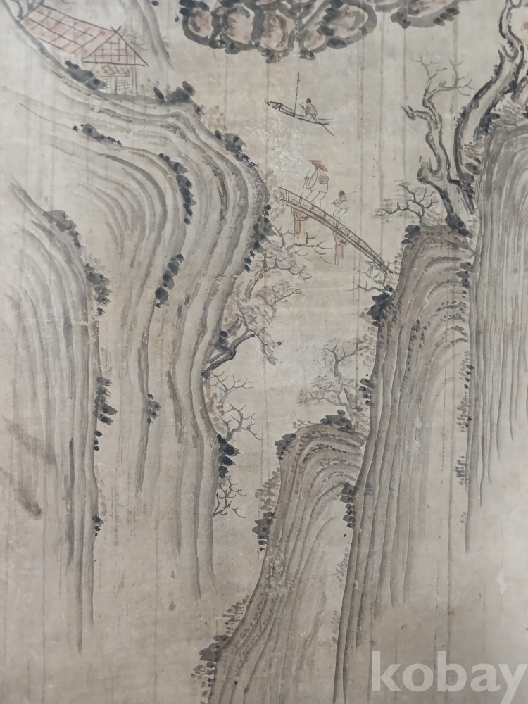 액자에서 떼어낸 배접상태로 오랜 세월의 고풍스런 맛과 매력이 있습니다