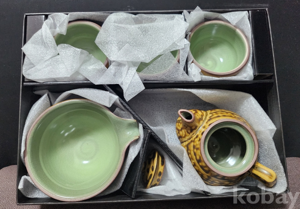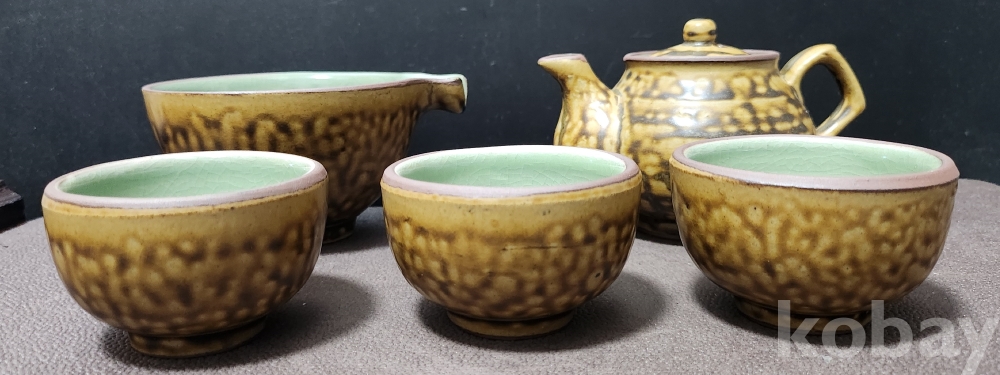 < 도예가 전시회 출품 作品 > 분청다기[粉靑茶器] < 미사용 박스 완비 작품 >
