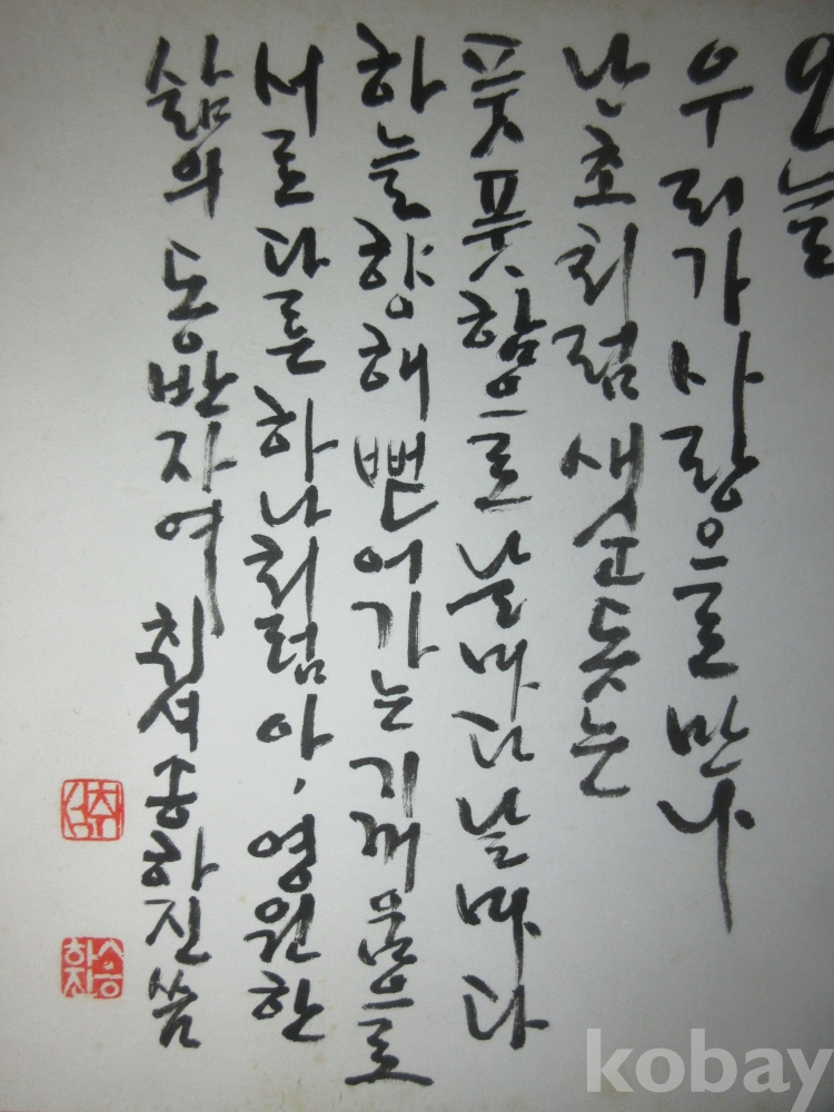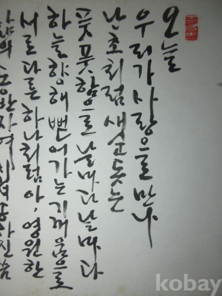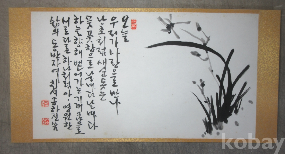 강암 송성용 아들 , 전라북도 도지사 취석 송하진 선생님의 난그림 한글서예 작품입니다.