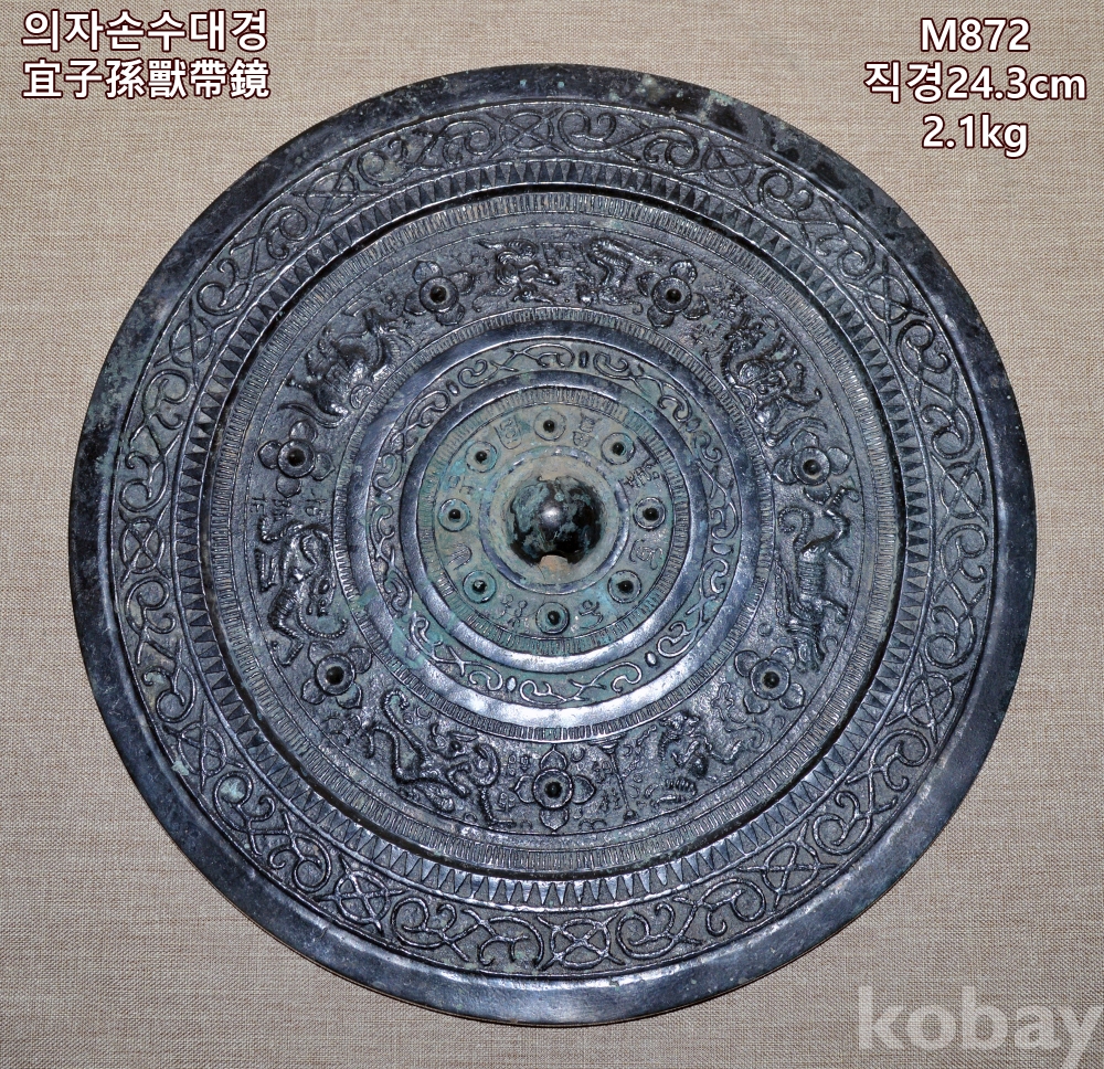국보161호가 무령왕릉에서 출토 되었으나 년대는 정확히 모르나 돋을 새김된 문자에 의자손(宜子孫)이라는 3자를 판독하였고, 동물이 있다해서 의자손수대경이라고
