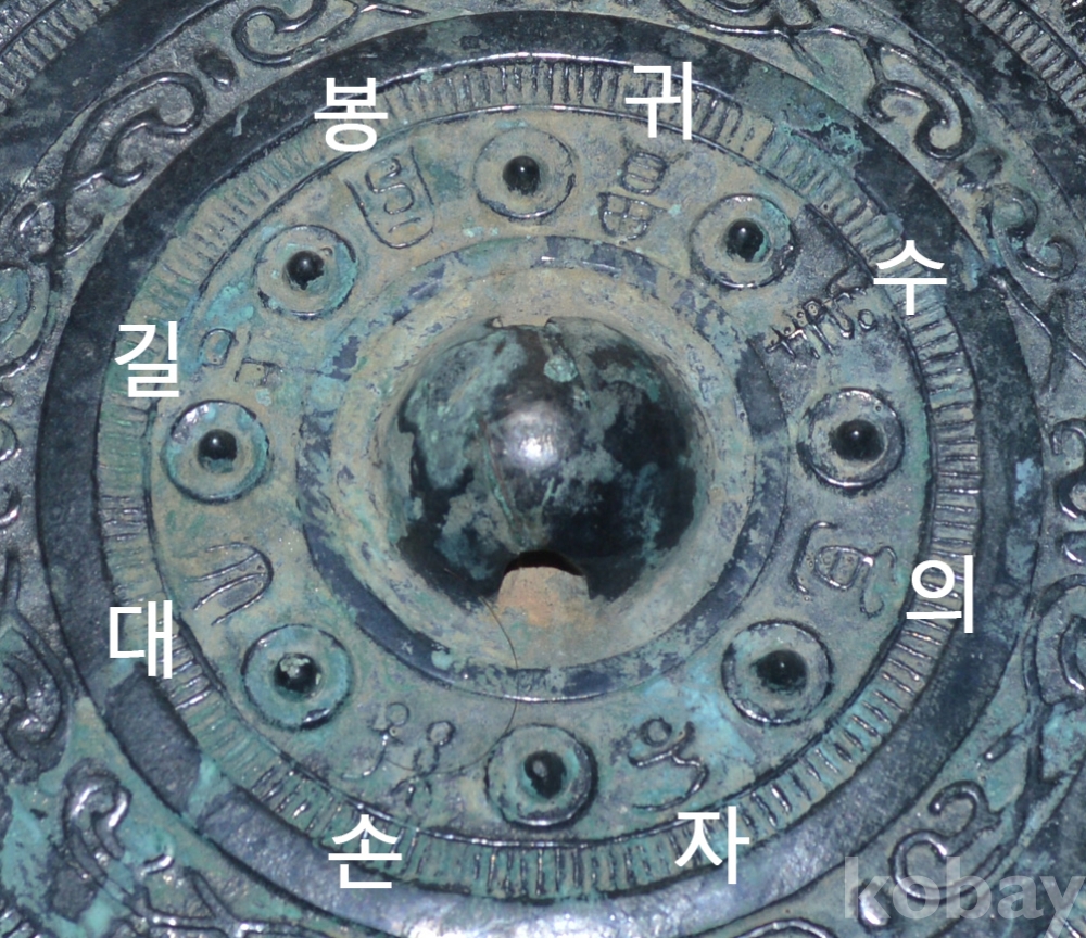 백제 등 삼국시대의 것으로 추정합니다. 국보와 같이 안쪽에 8개의 유(乳)가 있고 그사이에 8字의 문자가 있는데 모두