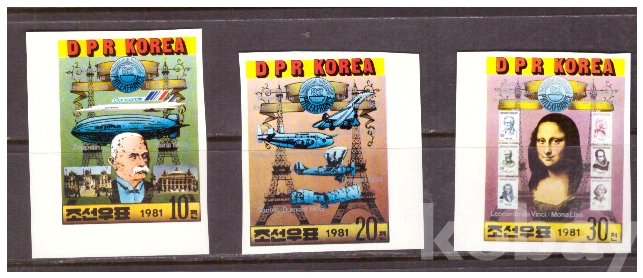 (비행기,미술) 북한 1981.12.1 세계우표전람회 <<필렉스프랑스 82>> (무 3완 MNH