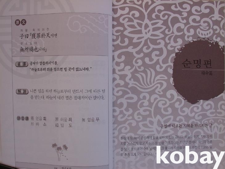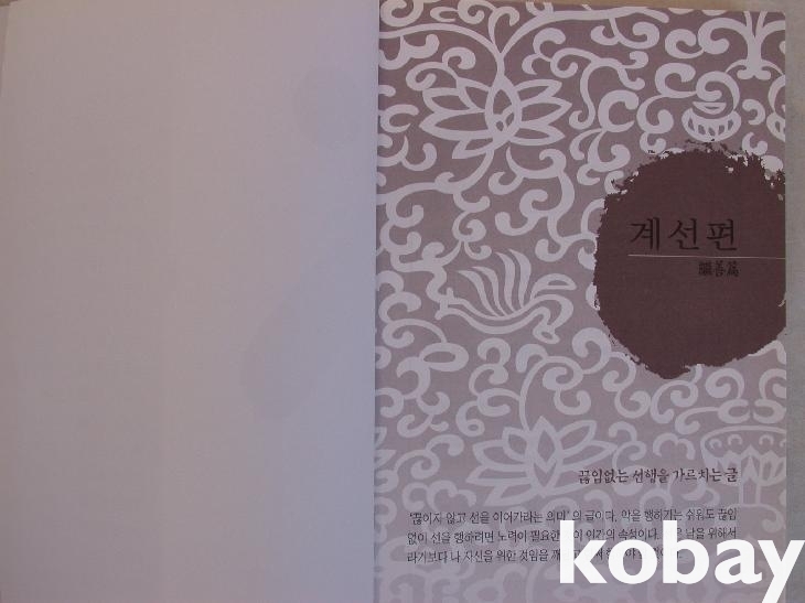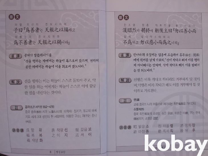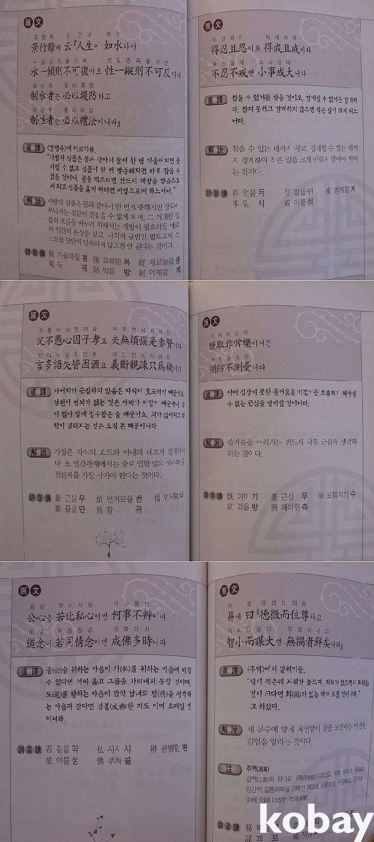 앞날개에 <명심보감>은 고려 때 추적이 편찬하였다며[근래 학계에서는 추적이 아니라 중국인이라고 밝혀졌음!] 좋은 글귀들이 많다고 소개하였다.