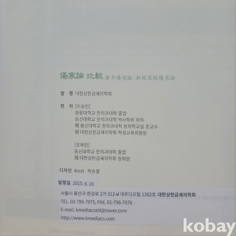 상한론 비교 (傷寒論 比較) : 이숭인 / 대한상한금궤의학회