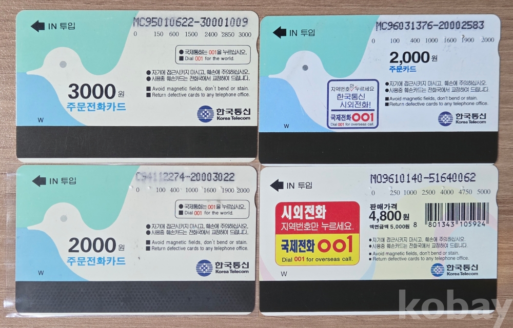 8-90년대 제작된 주문형 공중전화카드 4종일괄입니다 (사용제)