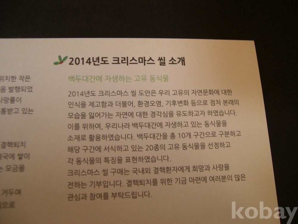 씰 #116 : 백두대간에 자생하는 고유 동식물 - 2014년 크리스마스 씰