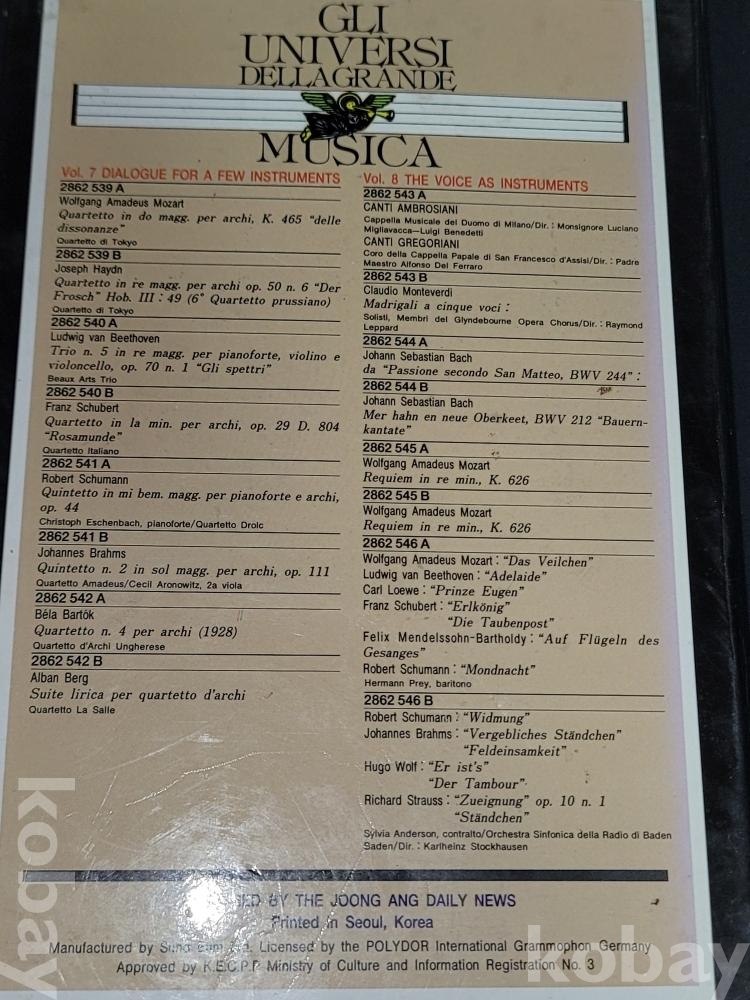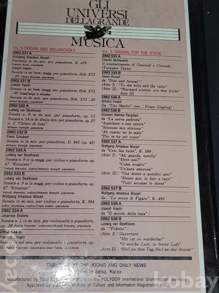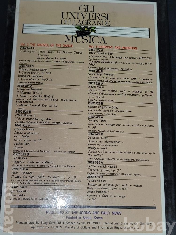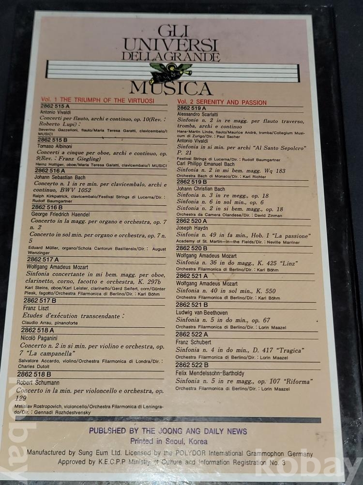 偉大한 音樂의 世界 위대한 음악의 세계 GLI UNIVERSI DELLAGRANDE MUSICA 1~12편이 담긴 카세트테이프 세트