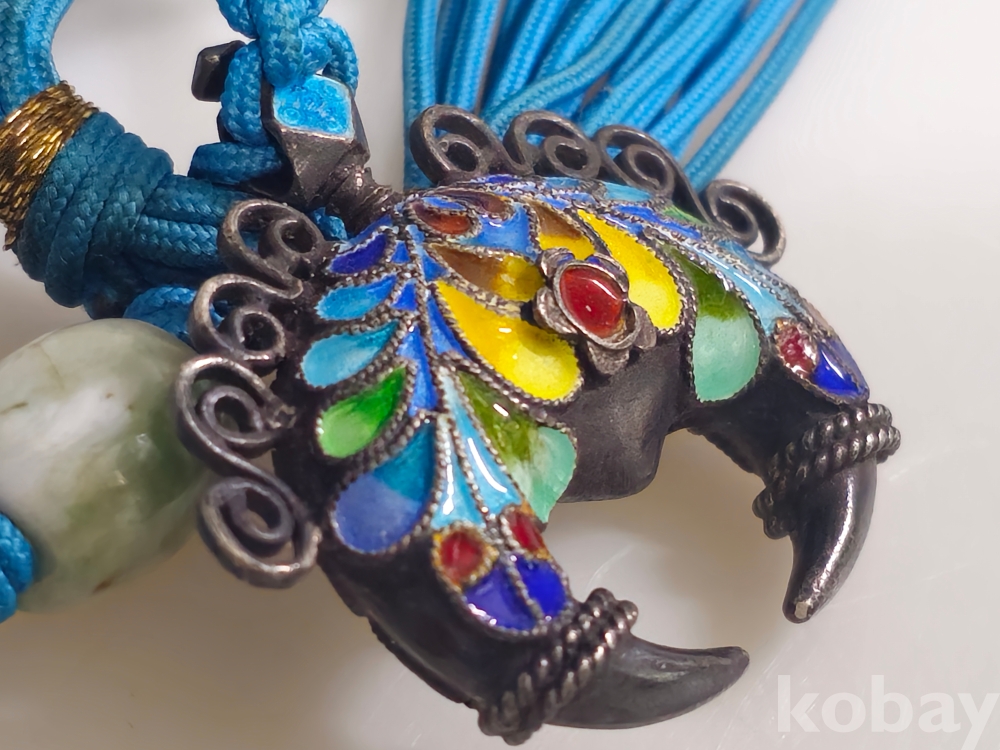 상품 설명 | 연대감 좋은 은칠보 호랑이 발톱형 노리개입니다. 수리없이 상태양호하며 호랑이 발톱형태로 기물의 격을 높였습니다. 맨 끝의 사진은 은시약을 한 사진입니다. 참고로 사진은 확대한 상태이며 설명못한 부분은 사진으로 대체합니다. 흔한 기물이 아니기에 소장의 가치가 높습니다. | ||