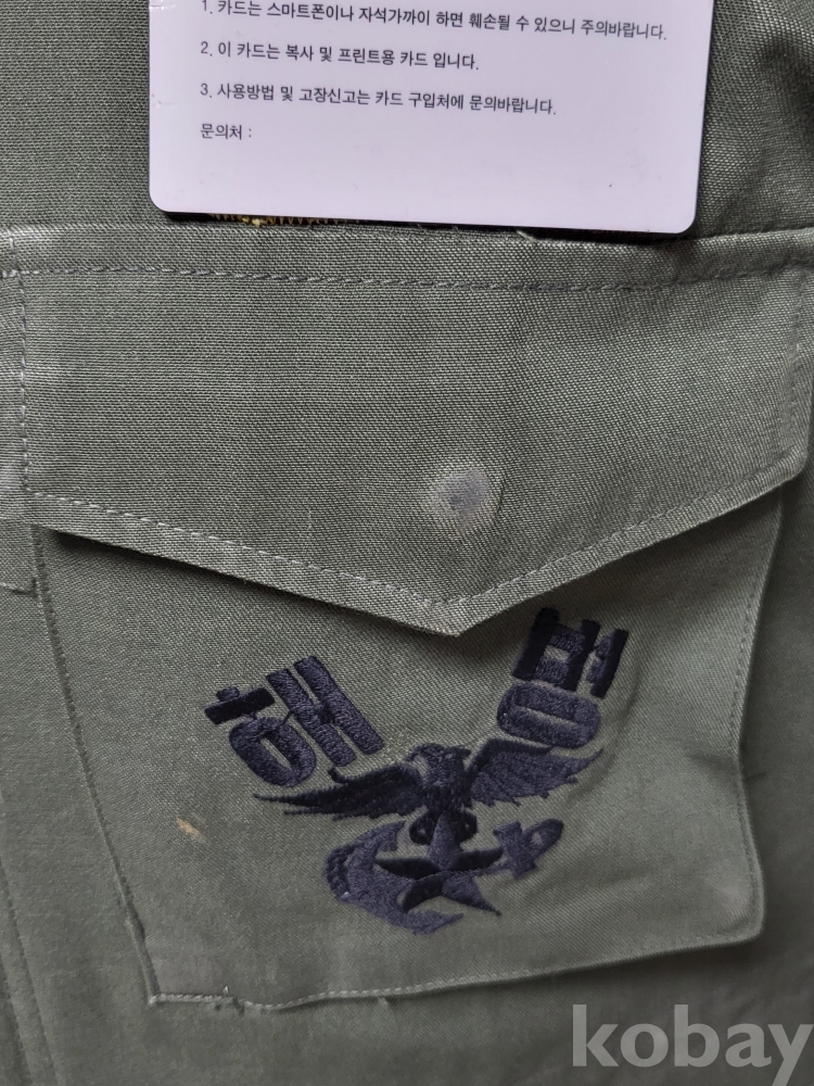 내피 부착, 해병 앵카 자수 타입, 호수 부착 태그는 없으나, 2호 사이즈 파악 됩니다