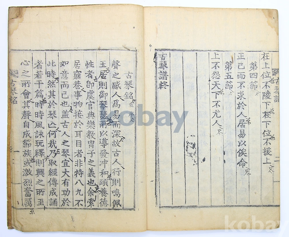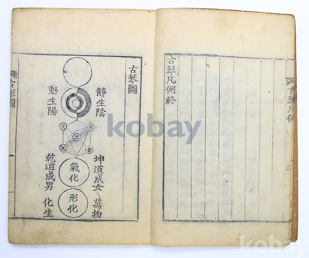 책머리에 10항으로 된 고금범례(古琴凡例)와 복희팔괘(伏羲八卦)·낙서(洛書)·문왕팔괘(文王八卦)의 그림이 있다.