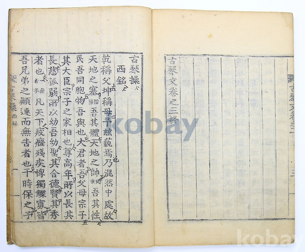 권1에는 주역(周易)의 계사(繫辭) 상전(上傳)·계사 하전(下傳), 권2에는 시경(詩經) 중에서 주남(周南)·관저삼장(關雎三章) 등 10여 편과 논어·맹자 등에서 고른 여러 구절, 권3에는 효경(孝經)·대학·중용(中庸) 등의 구절이 있다. 권외(卷外)에 고금조(古琴操)의 서명(西銘)과 고금보(古琴譜)를 수록하였다.