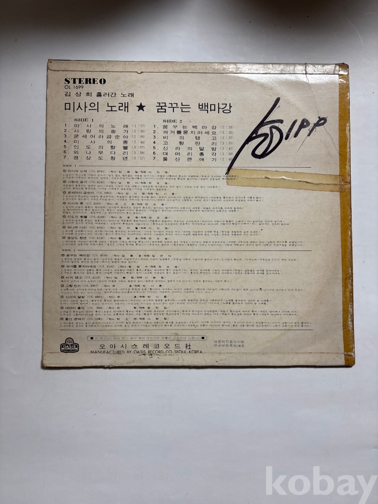 | 자켓상태 | G : 눈에 띄는 손상, 테이프, 필기 존재 | 음반상태 | EX : 재생에 영향 없는 가벼운 기스 존재 | 발매정보 | 초반 | 가사지여부 | 무 |