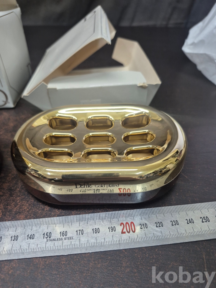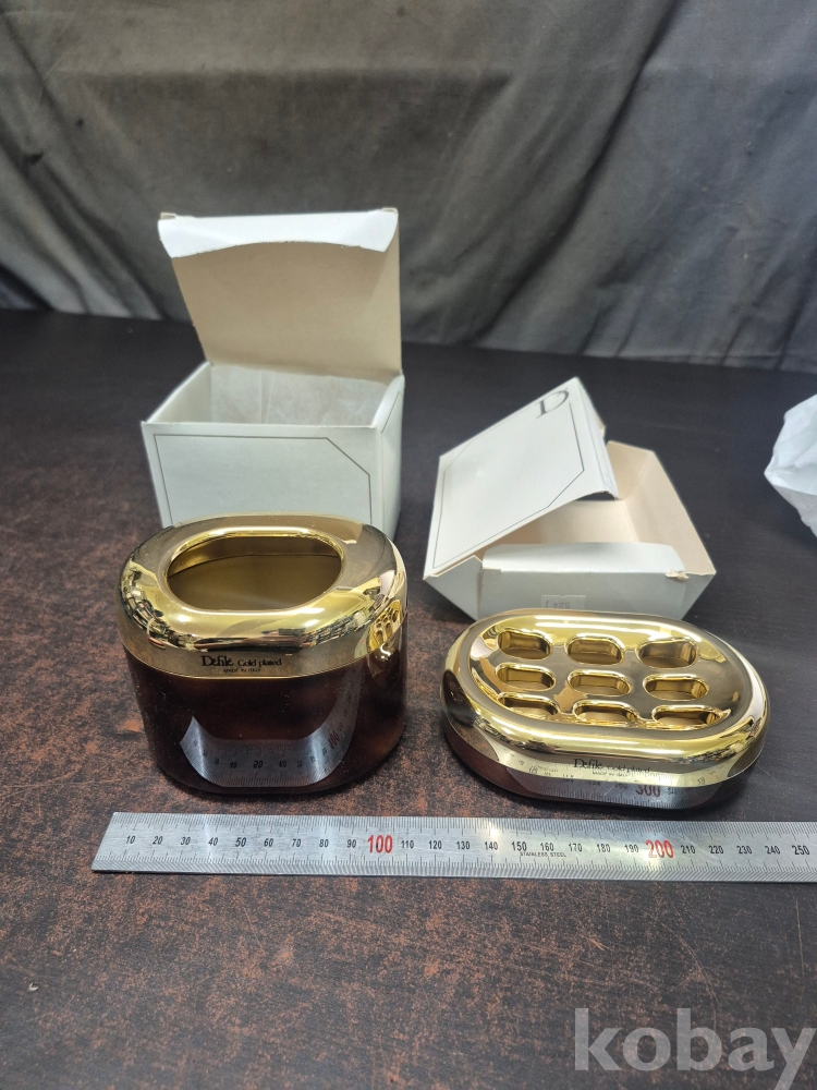 미사용 DEFILE GOLD PLATED 욕실 용품 2점 메이드 인 이탈리아 12*10*10