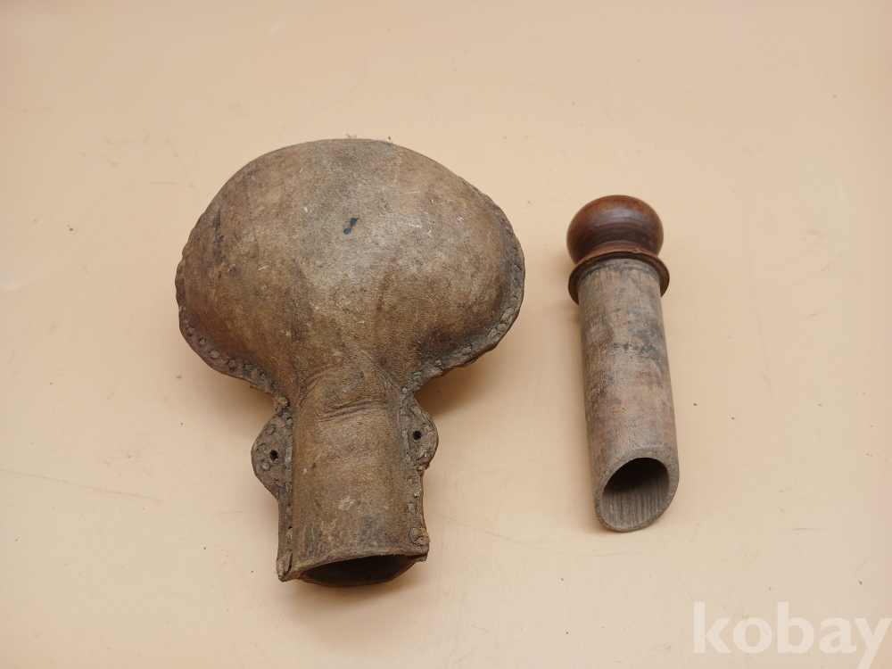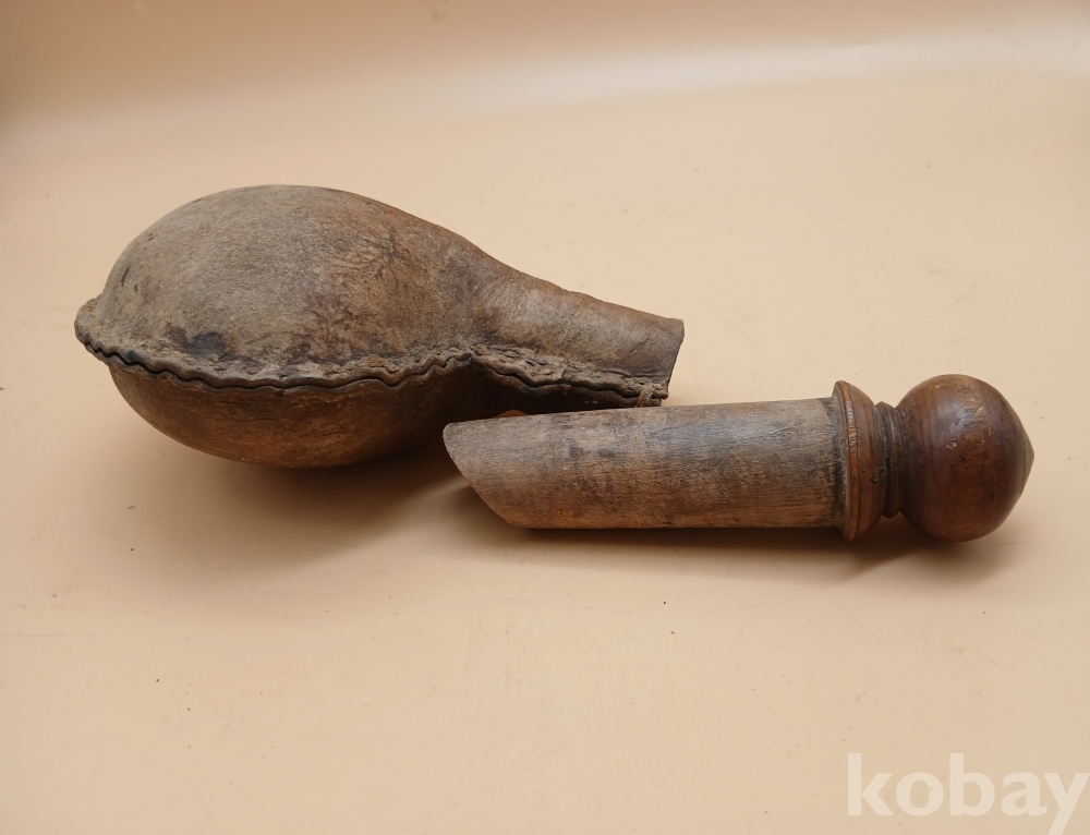 가죽 재질의 주머니와 마개는 나무로 되어 있습니다.