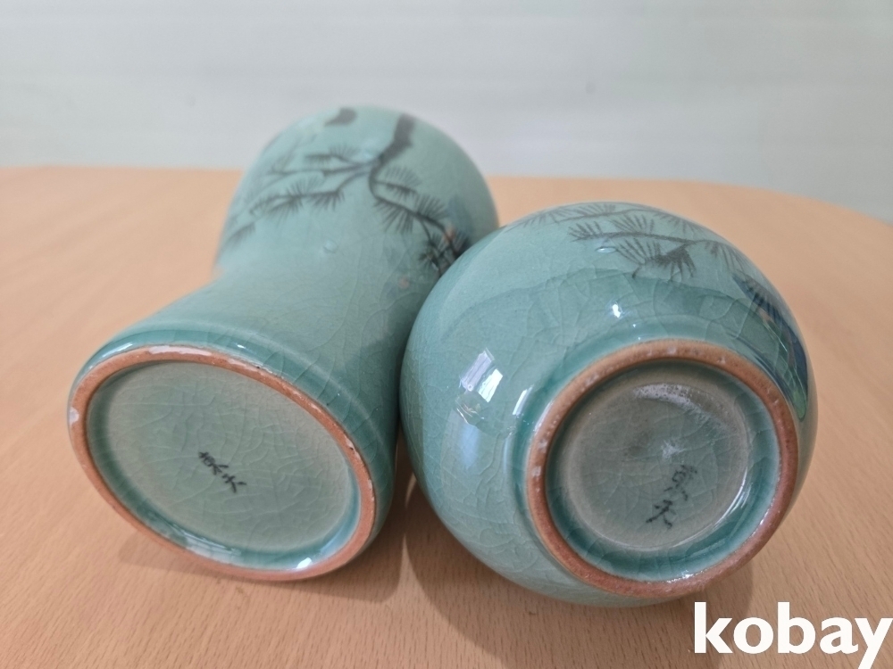 소나무에 학 표현 매병, 주병 도자기 셋트 입니다.