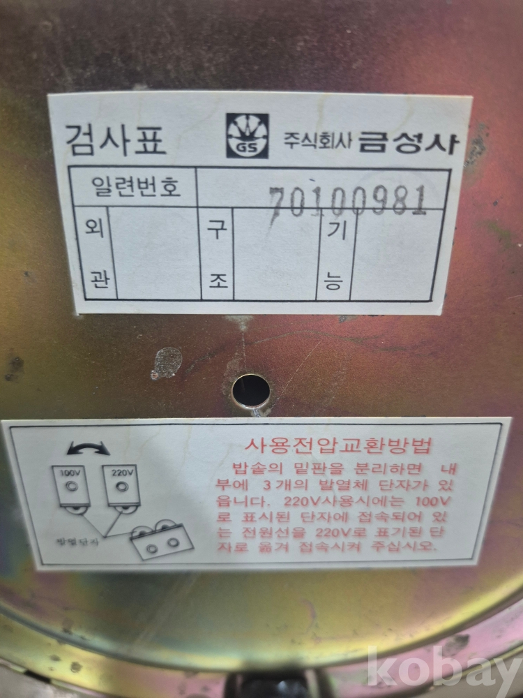 1970년 골드스타 금성 전기 밥솥 모델 RC -252-B 12인용 밥솥 정상작동 30*30*25