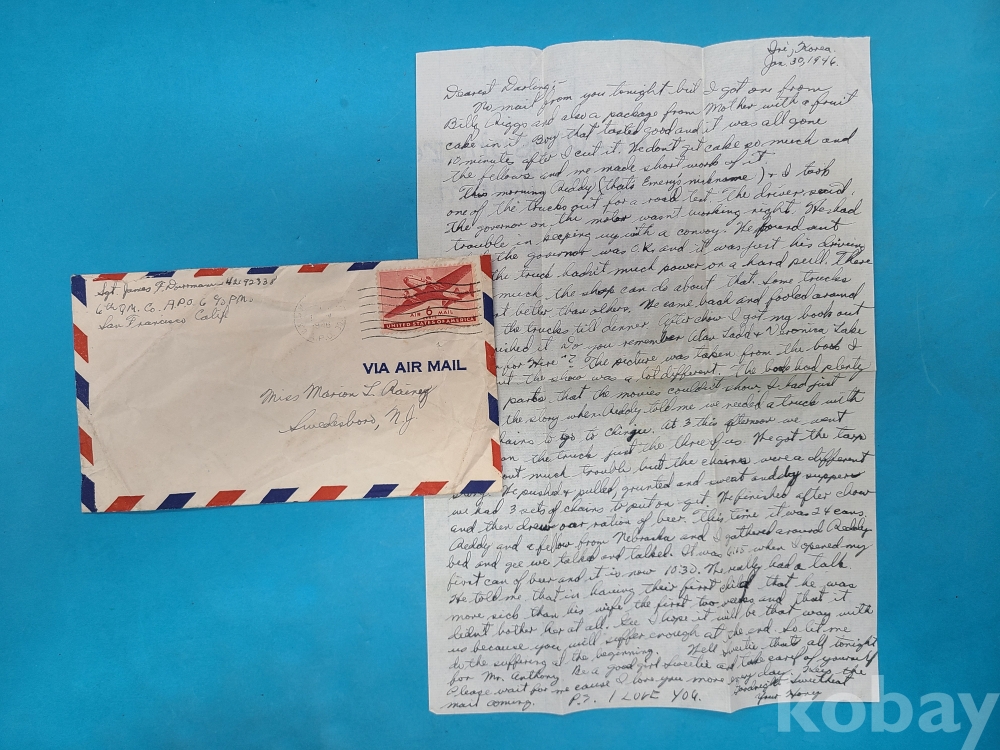 **** 해방후1945년 전북 이리에 진주한 미군이 보낸 군사우편 실체(편지글 포함)*U.S.ARMY POSTAL SERVICE, NOV,2,1945