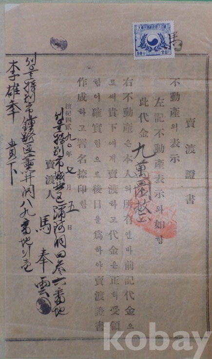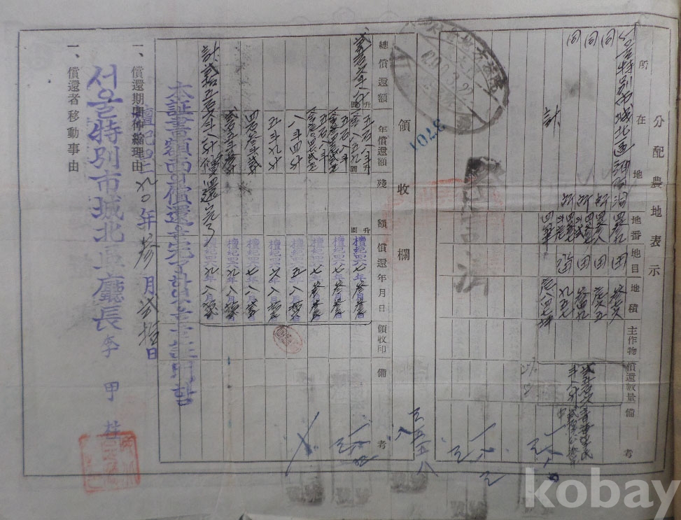 1957년 상환완료증서(서울특별시 성북구청장) 성북구 미아동 토지 매도증서 (수입인지 첩부)
