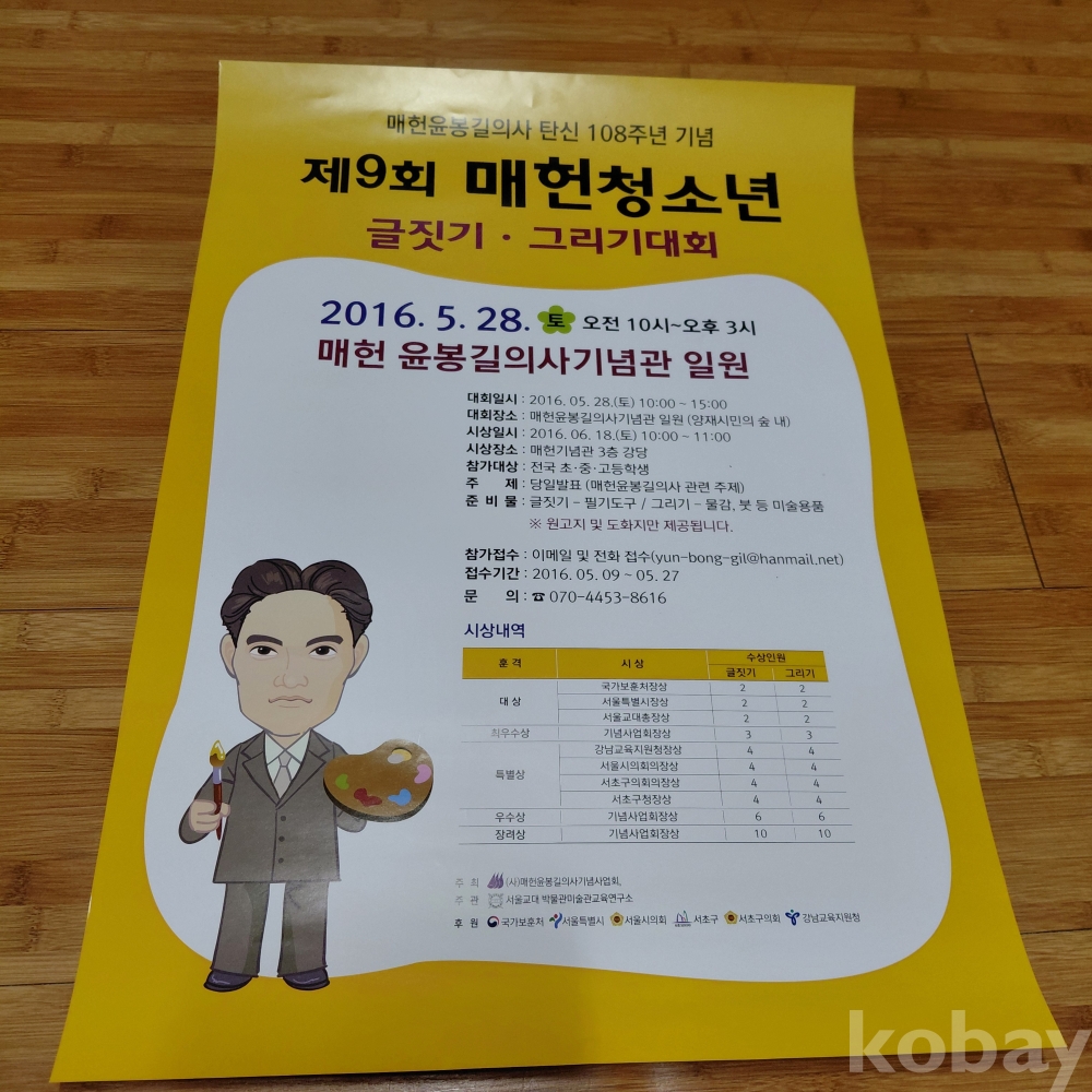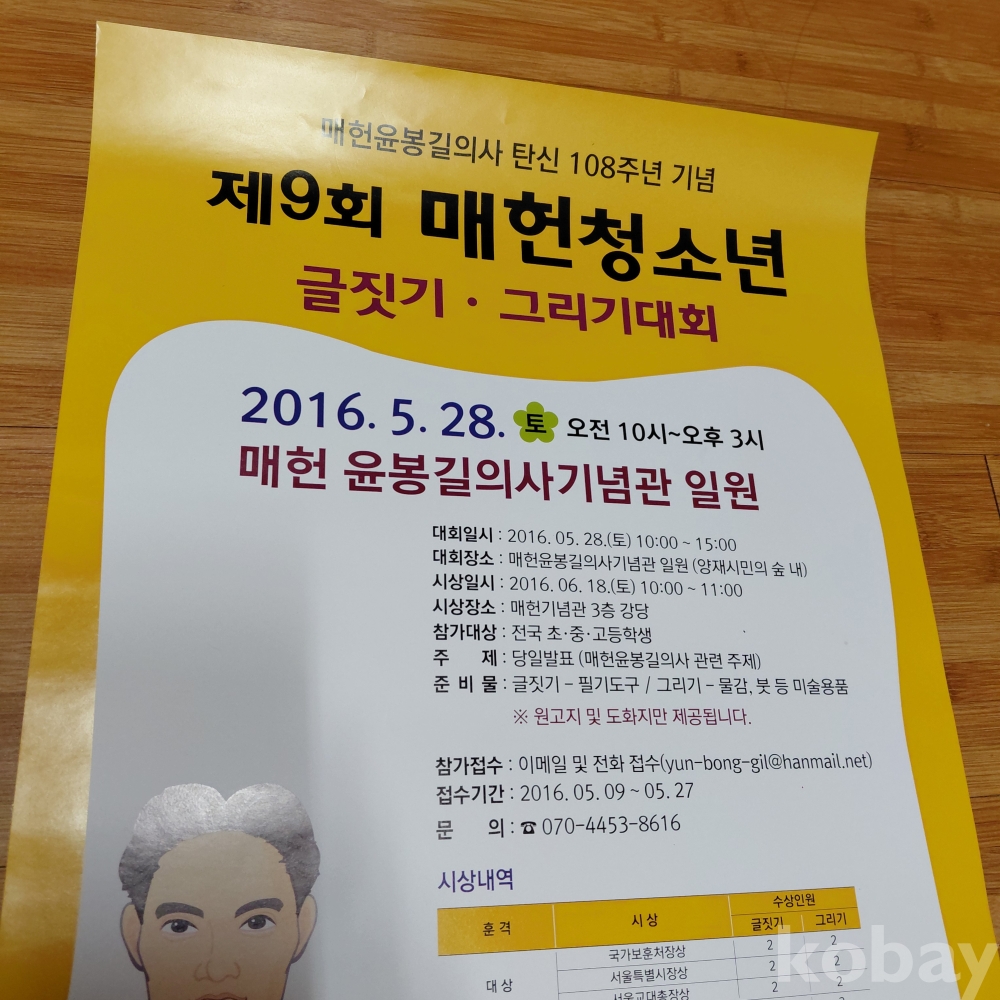 제9회 매헌 청소년 글짓기 ㆍ그리기대회 홍보포스터 한장 올려드립니다