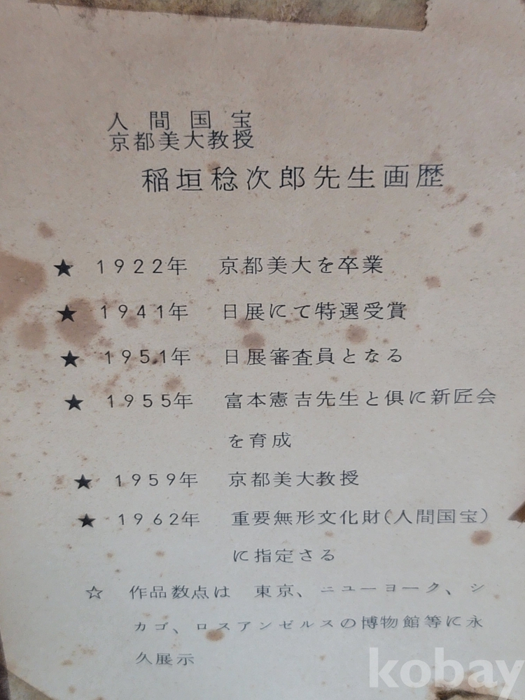 유명한 일본의 교토미대교수 역임하신 인간국보 이나가키 선생의 오리지날 판화 작품