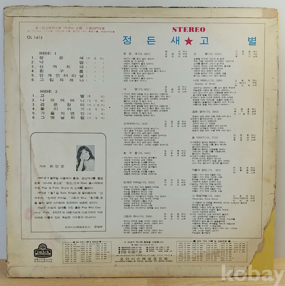 최안순 / 홍민 (정든 새 / 고별) 1973년 오아시스레코드 초반