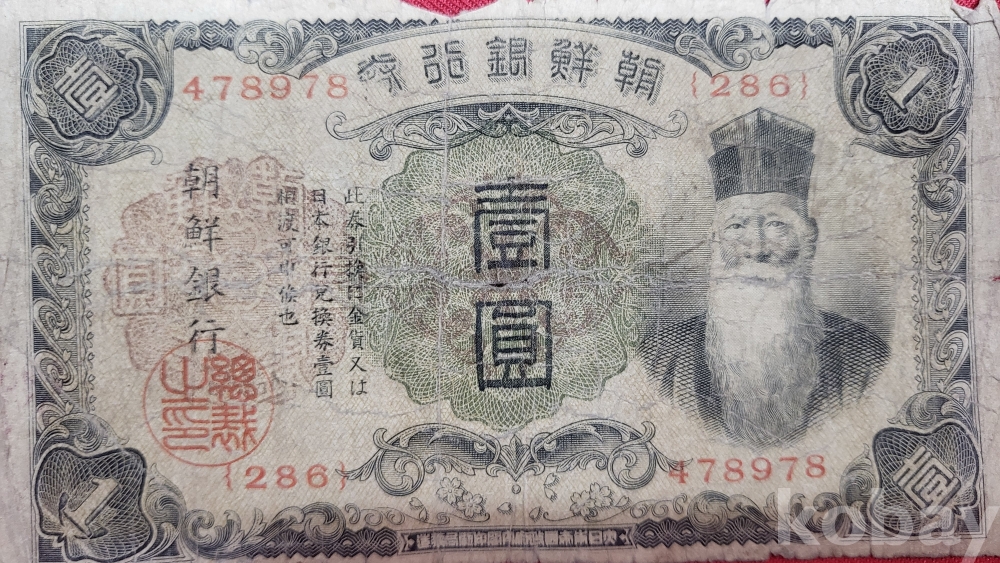 T ㅡ2권 6호 넷좌번 ////// 일제강점기 때 사용되었던 조선은행의 일원 지폐입니다,