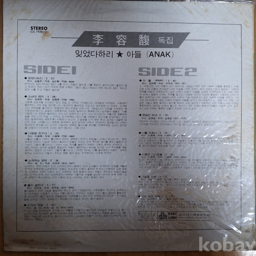 ㆍ오랜 세월의 흔적으로 겉비닐 일부가 터짐이나 자켓의 일부분에 먼지가 습기가 스며들어 훼손이 있을 수 있습니다.