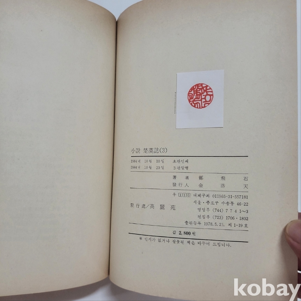 중급 : 표지없음/ 바램/ 필기 낙서/ 직인/ 갈라짐