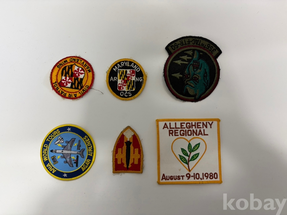 항공 및 군사 관련 패치들로 구성된 수집품입니다.