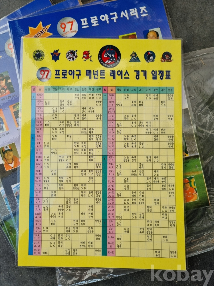97 프로야구 책받침 5장입니다.