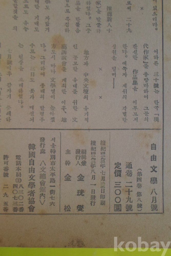 50년대 중요 잡지 4292 자유문학 8월호