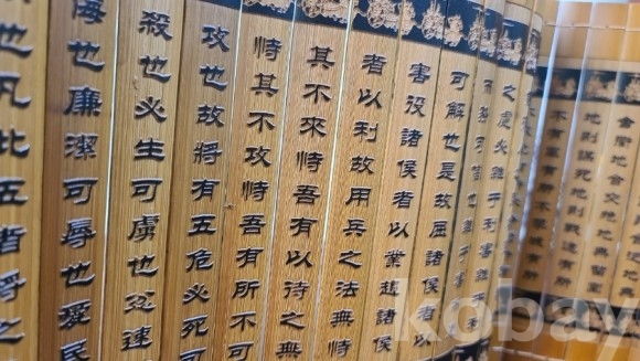 품질 좋은 대나무를 선별하여 일정하게 자르고 양각으로 한자를 양각으로 표현하였습니다