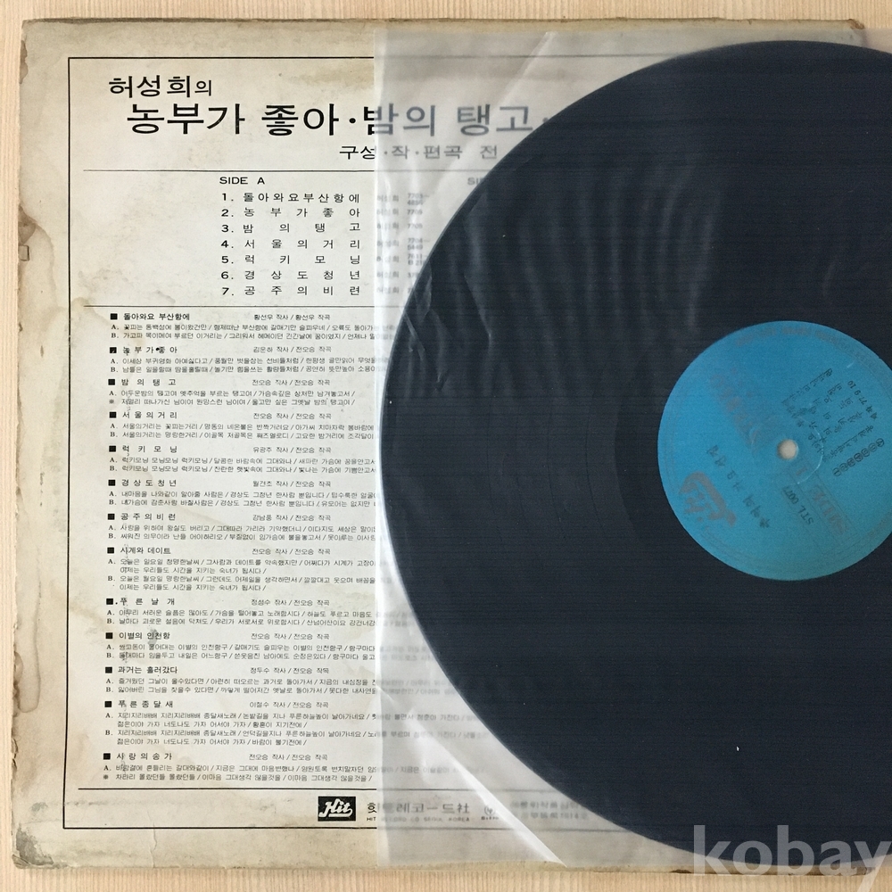 1. 돌아와요 부산항에 2. 농부가 좋아 3. 밤이 탱고 4. 서울의 거리 5. 럭키모닝 6. 경상도 청년 7. 공주의 비련  | 1. 시계와 데이트 2. 푸른 날개 3. 이별의 인천항 4. 과거는 흘러갔다 5. 푸른 종달새 6. 사랑의 송가  |