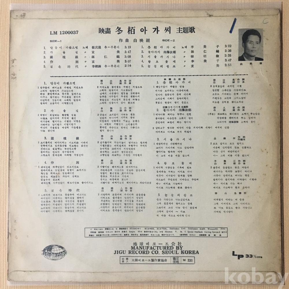 . 가요음반 대부분은 휘어짐이나 손상을 방지하기 위해 무지싱글자킷을 하나 더 사용하여 보관되었던 음반들입니다.
