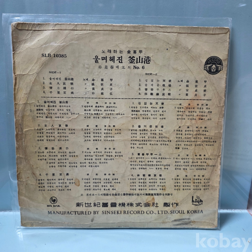 | 자켓상태 | VG : 주름, 접힘, 모서리 찢김 다수 | 음반상태 | VG : 생활 기스 다수, 가벼운 노이즈 존재 | 발매정보 | 초반 | 가사지여부 | 무 |