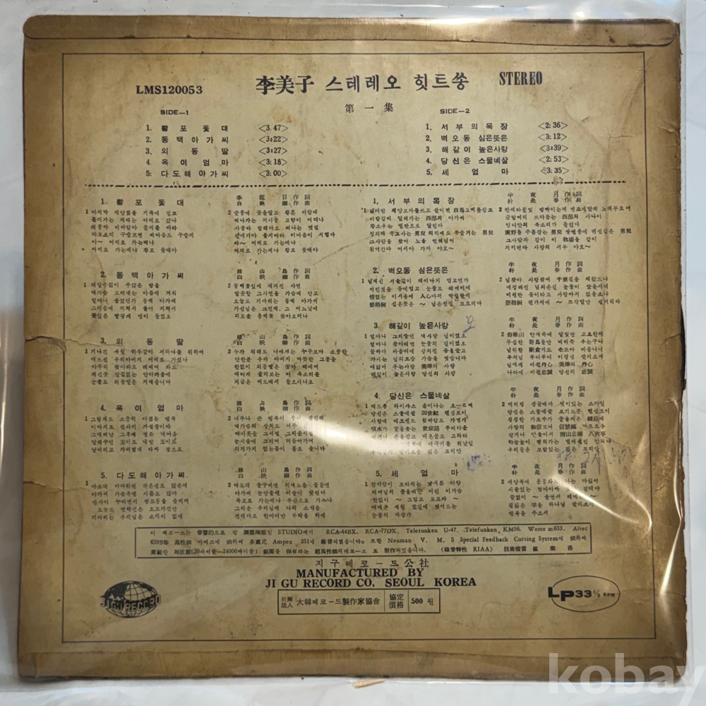 EX : 약간의 마모, 모서리 찢김 존재 음반상태