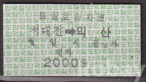 - 미사용 통일호 승차권 " 서대전 ▶ 익산 " 2000원