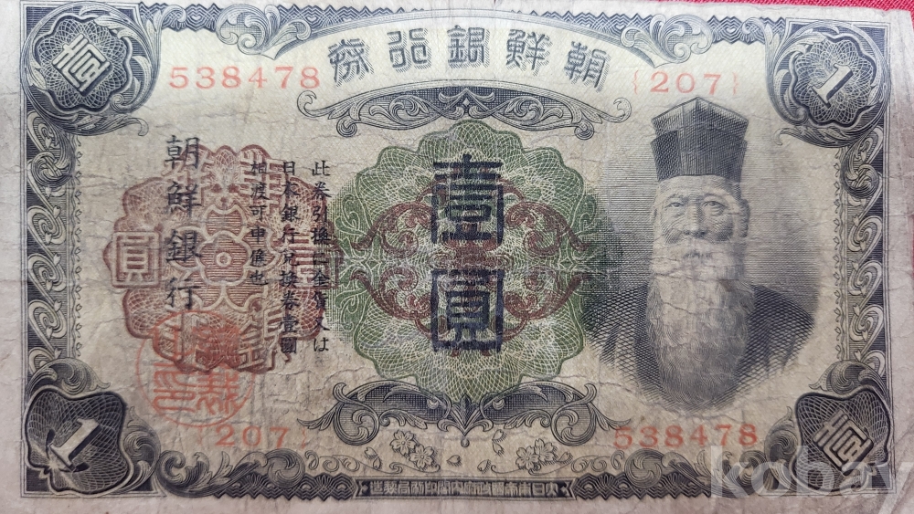 조선은행의 일원 지폐는 일제강점기 조선에서 유통되던 공식 화폐로, 일본 제국 통화 시스템에 편입된 화폐입니다.
