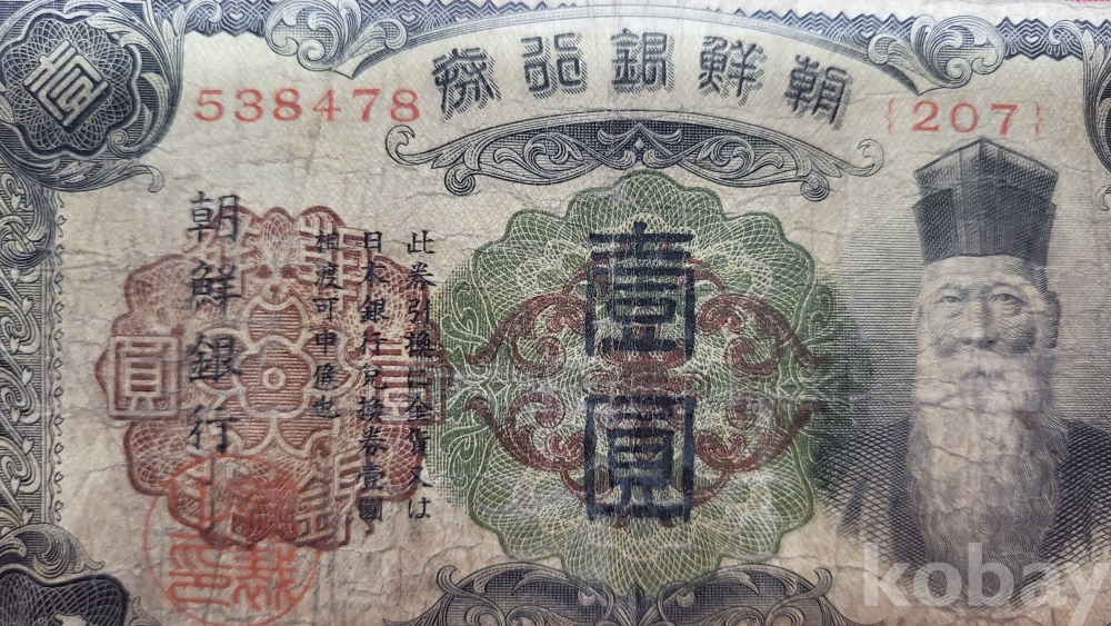 이 지폐는 조선총독부 산하의 조선은행에서 발행되었으며,