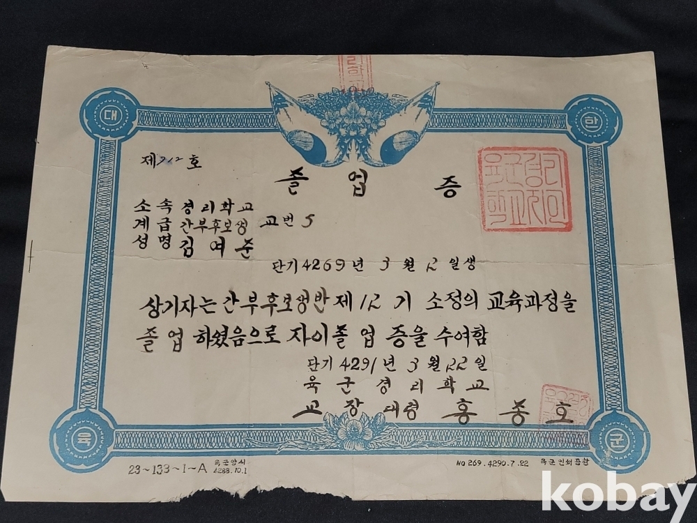 빈티지 세월 감이 느껴지는 1958년 육군경리학교 졸업장, 일본 EBISU 일회용 칫솔, 1997년 기핀표 성냥, 독일 바이오 프로닥스 다용도 세척 광택 클리너, 스푼, 카스 병따개 등 6종 일괄입니다.