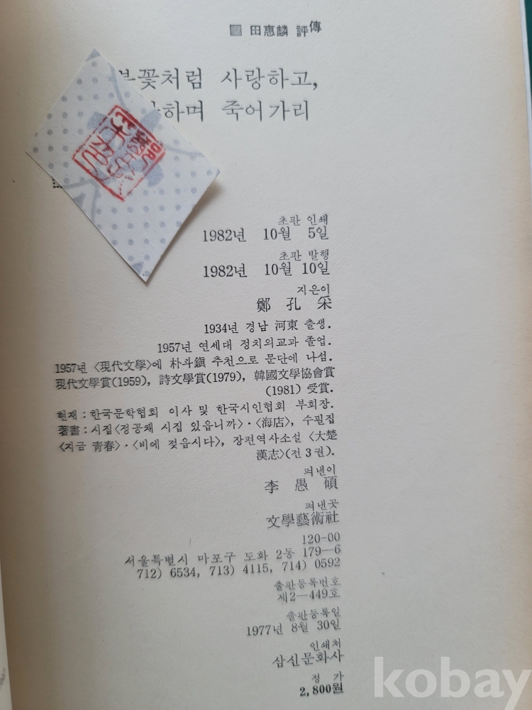 정공채(경상남도 하동: 1934~2008) 평론집.