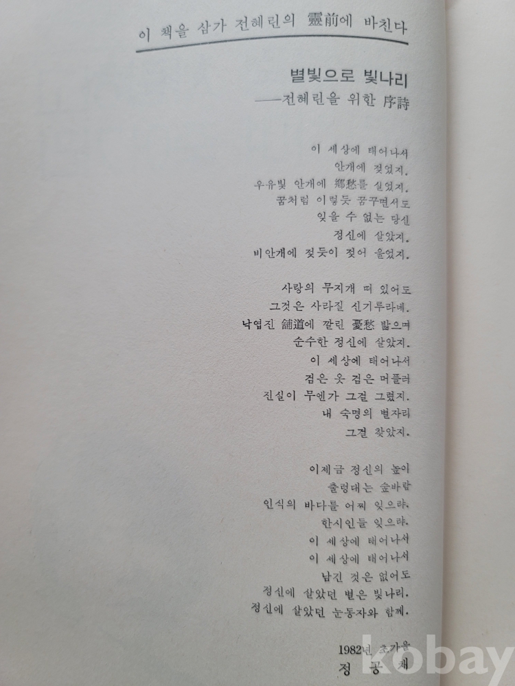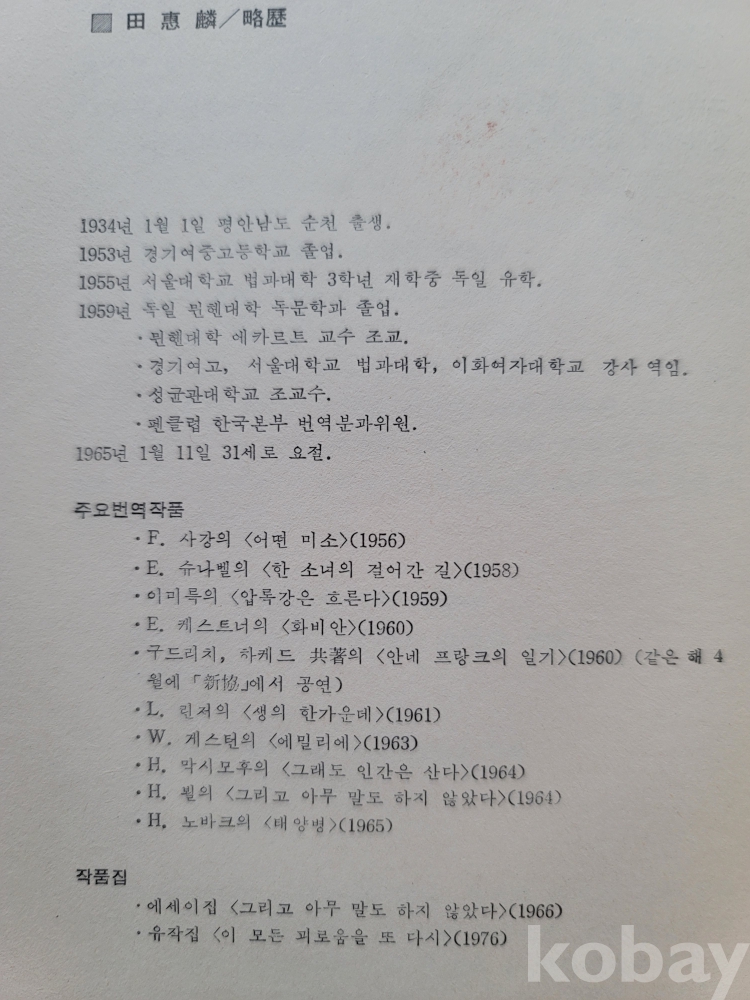1982년 발간한 전혜린 평전 『아! 田惠麟: 불꽃처럼 사랑하고, 사랑하며 죽어가리』